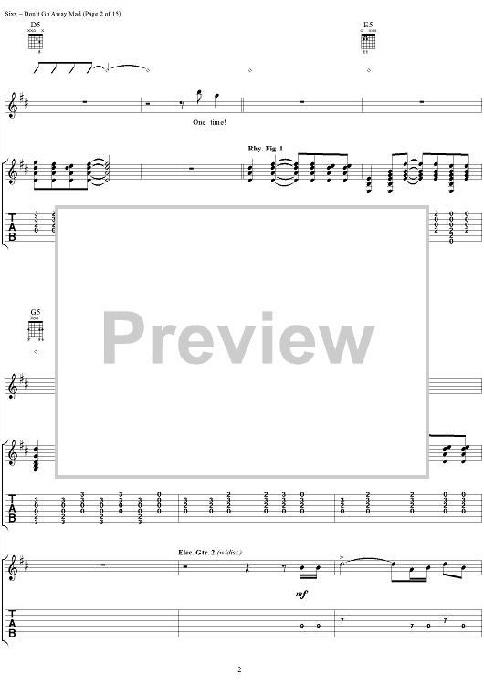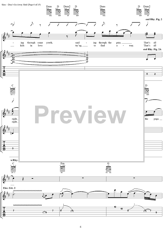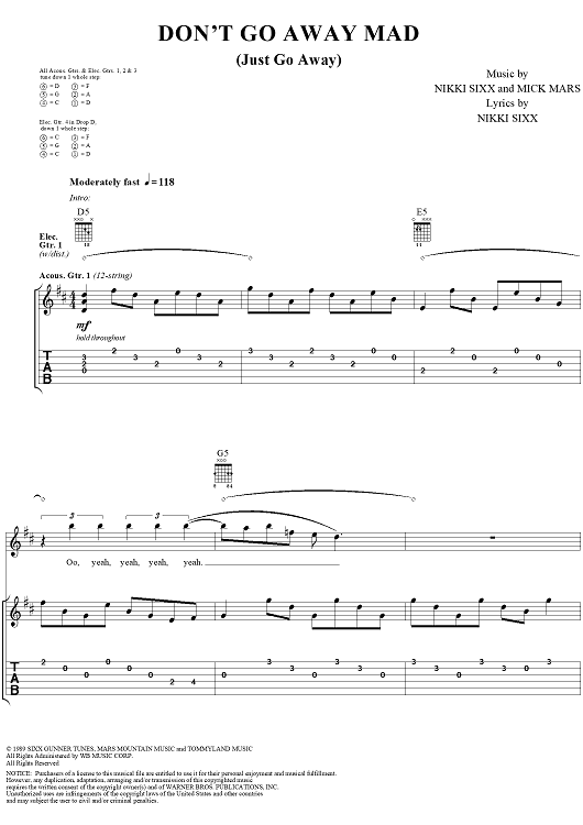 Digital Sheet Music for Don't Go Away Mad by Mötley Crüe, Nikki Sixx, Mick Mars scored for Guitar Tab/Vocal; id:297759