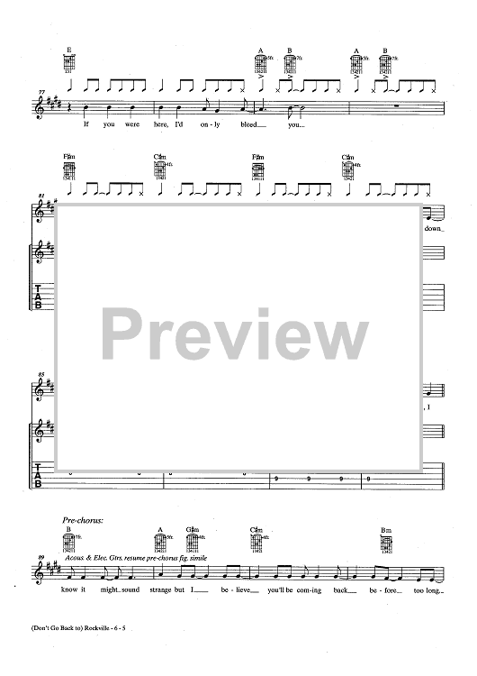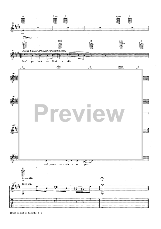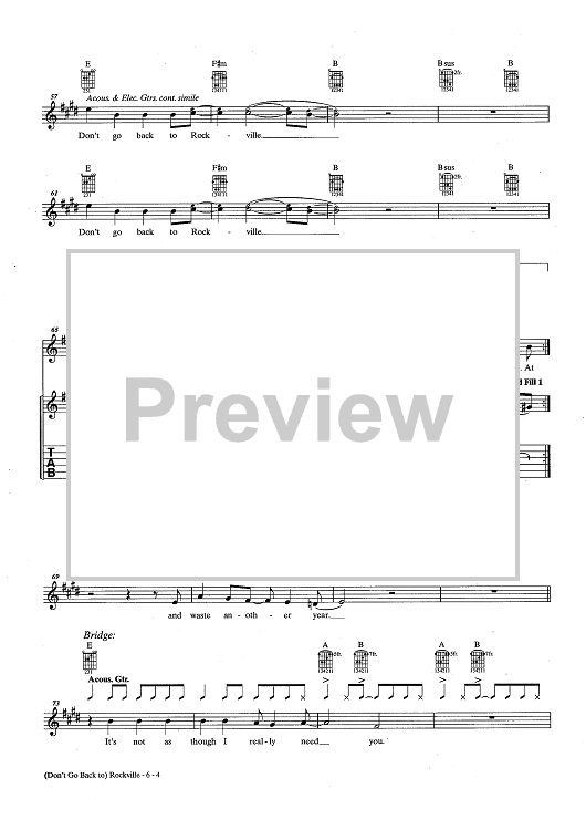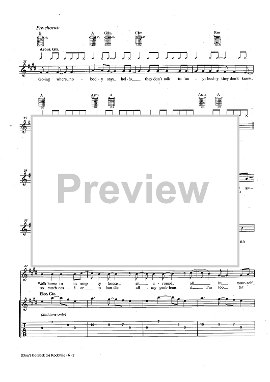 Digital Sheet Music for (Don't Go Back To) Rockville by R.E.M., Michael Stipe, Peter Buck, Mike Mills, Bill Berry scored for Guitar Tab/Vocal/Chords; id:436622