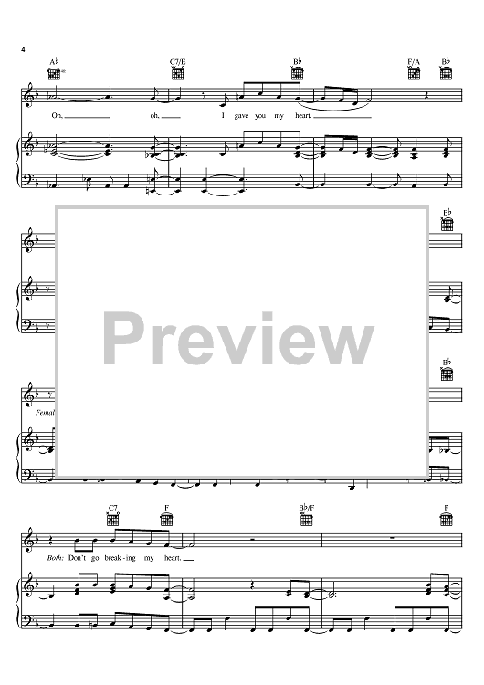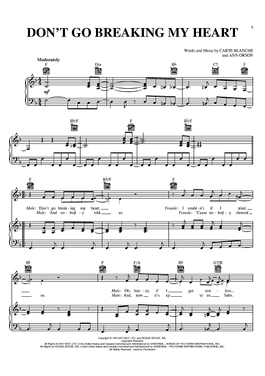 Digital Sheet Music for Don't Go Breaking My Heart by Elton John, Carte Blanche, Ann Orson, Kiki Dee, Abby Mallard scored for Piano/Vocal/Chords; id:388586