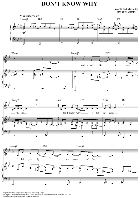 Digital Sheet Music for Don't Know Why by Jesse Harris, Norah Jones scored for Piano/Vocal/Chords; id:362915
