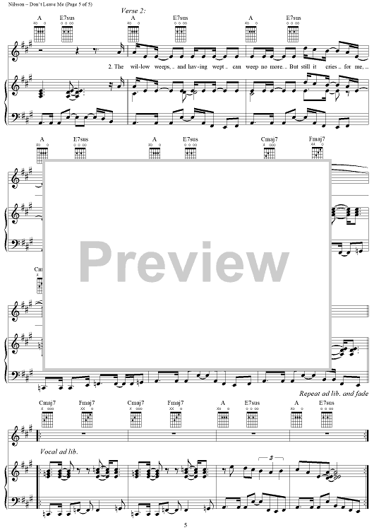 "Don't Leave Me" Sheet Music by Harry Nilsson