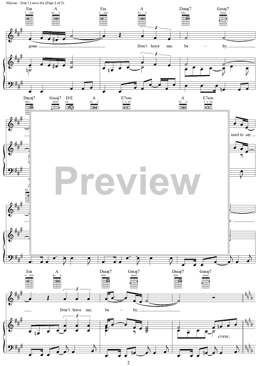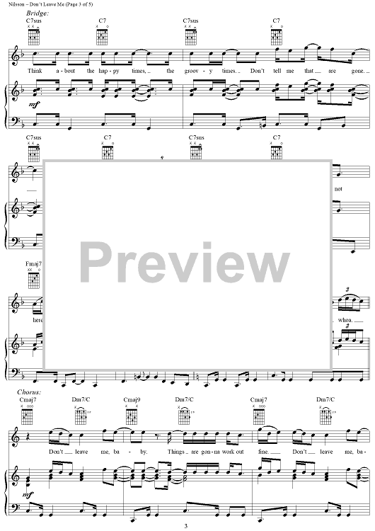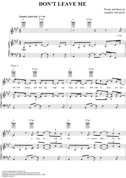 Digital Sheet Music for Don't Leave Me by Harry Nilsson scored for Piano/Vocal/Chords; id:241196