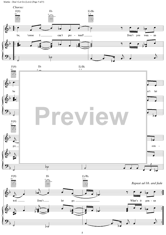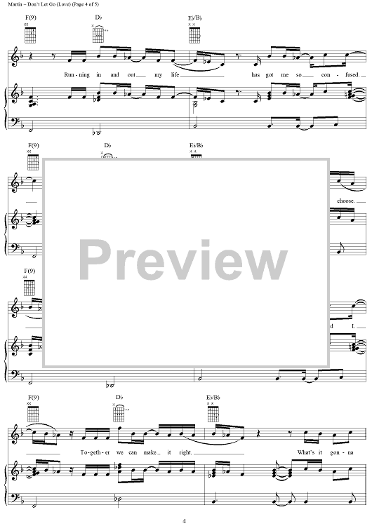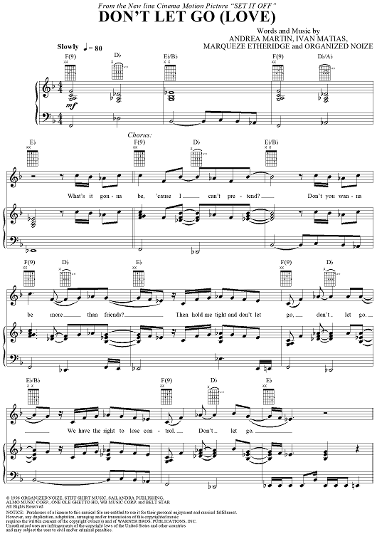 Digital Sheet Music for Don't Let Go (Love) by En Vogue, Andrea Martin, Ivan Matias, Marqueze Etheridge, Organized Noize scored for Piano/Vocal/Chords; id:240903