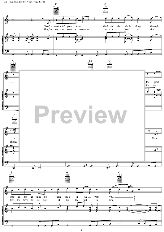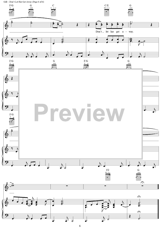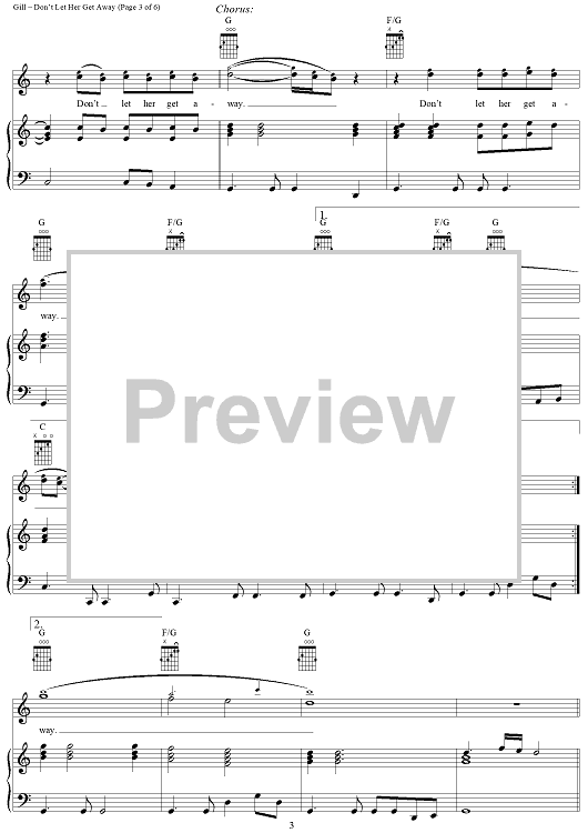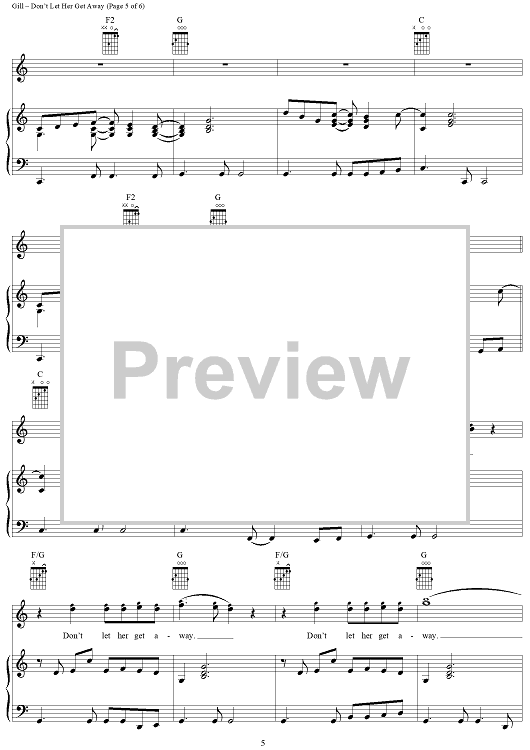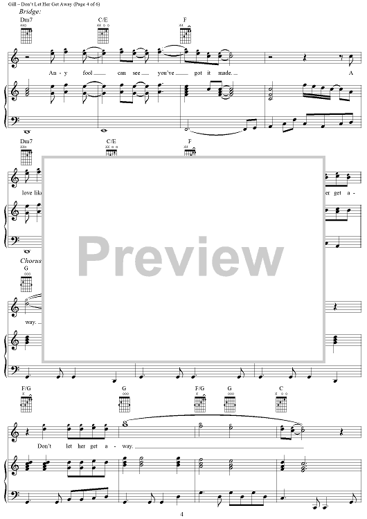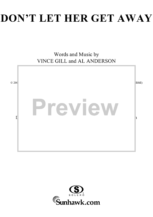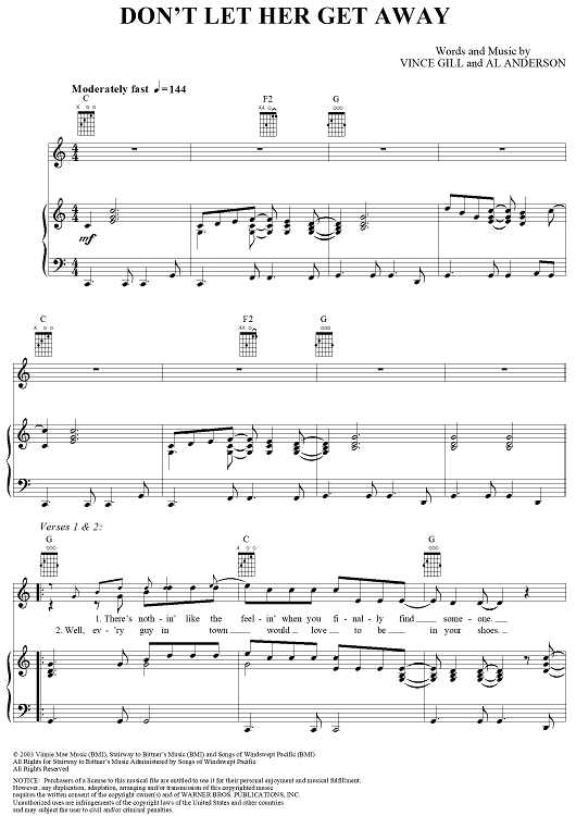 Digital Sheet Music for Don't Let Her Get Away by Vince Gill, Al Anderson scored for Piano/Vocal/Chords; id:296951