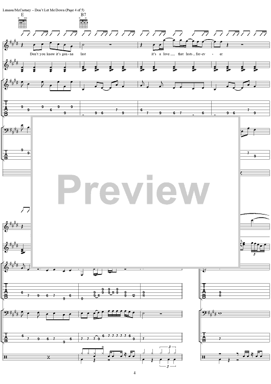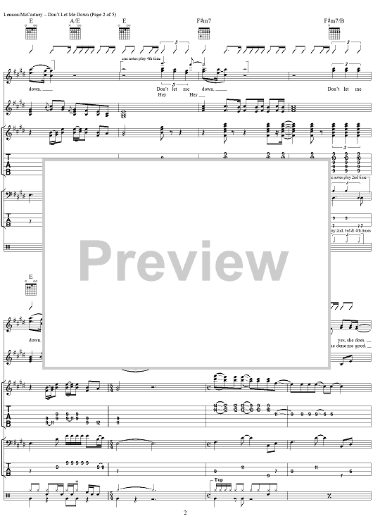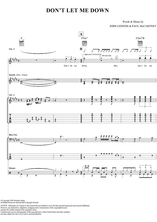"Don't Let Me Down" Sheet Music by The Beatles