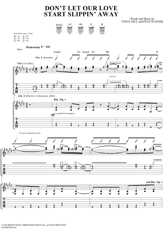 "Don't Let Our Love Start Slippin' Away" Sheet Music by Vince Gill