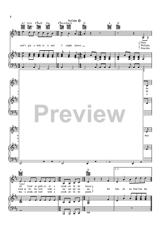Digital Sheet Music for Don't Let The Rain Come Down (Crooked Little Man) (Crooked Little House) by Ersel Hicky, Ed. E. Miller, Serendipity Singers scored for Piano/Vocal/Chords; id:391703