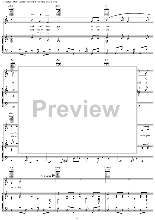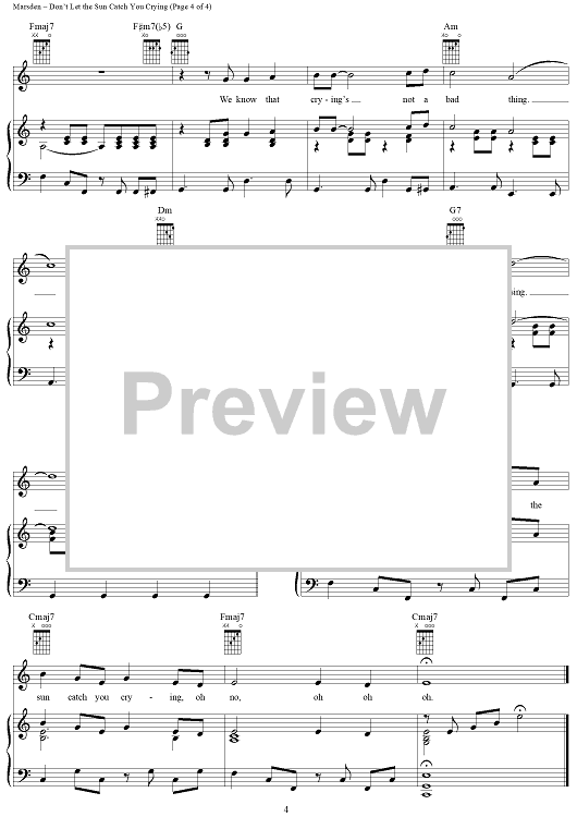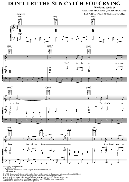 Digital Sheet Music for Don't Let the Sun Catch You Crying by Gerard Marsden, Fred Marsden, Les Chadwick, Les Maguire, Gerry and the Pacemakers scored for Piano/Vocal/Chords; id:287061
