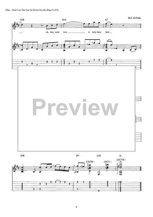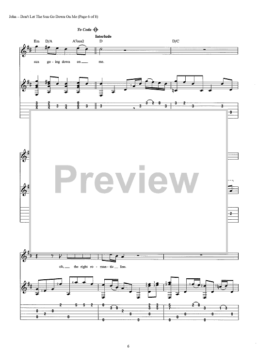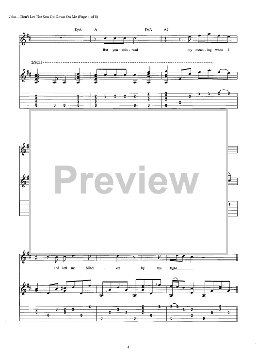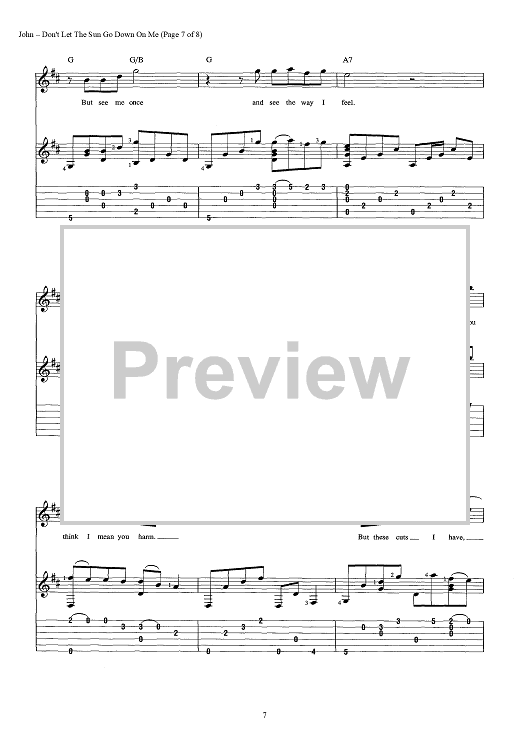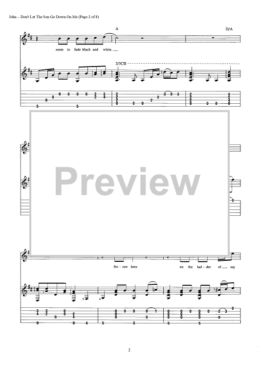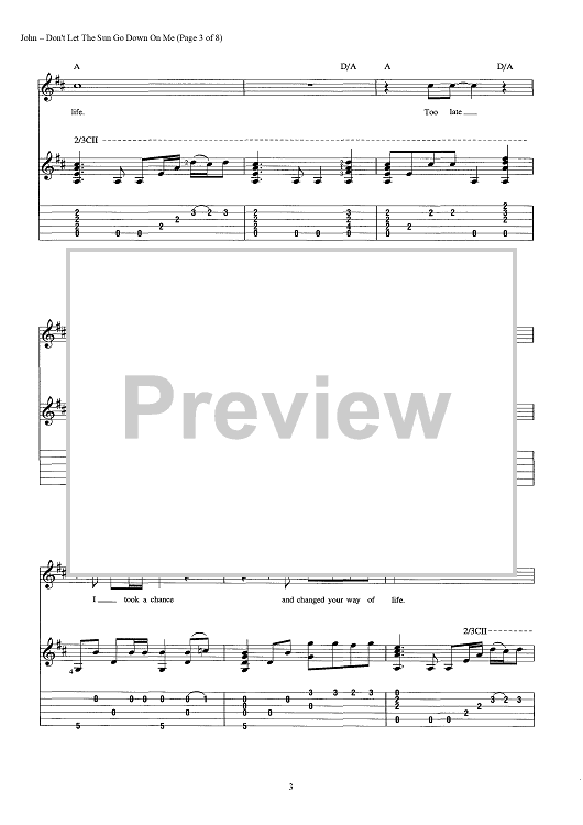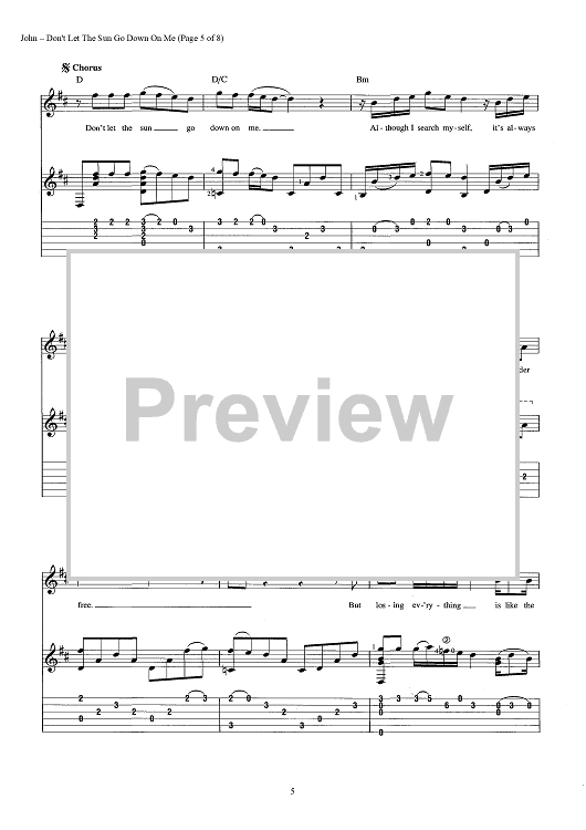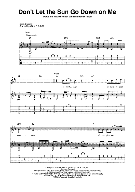 Digital Sheet Music for Don't Let The Sun Go Down On Me by Elton John, Bernie Taupin scored for Guitar Tab/Vocal/Chords; id:442904