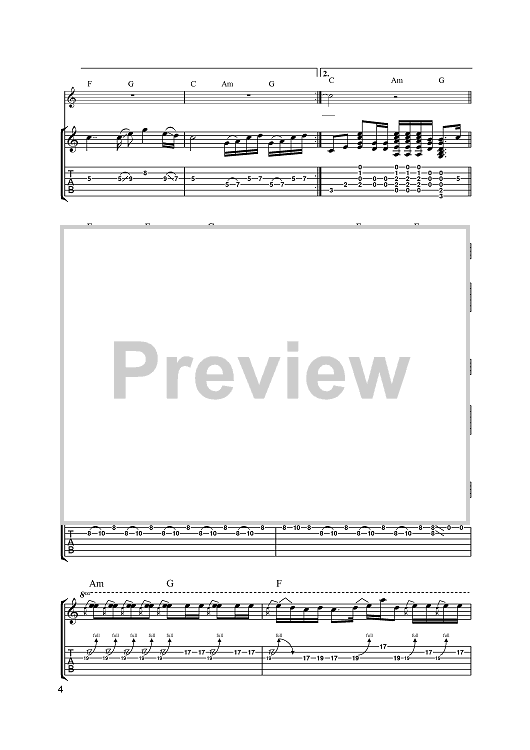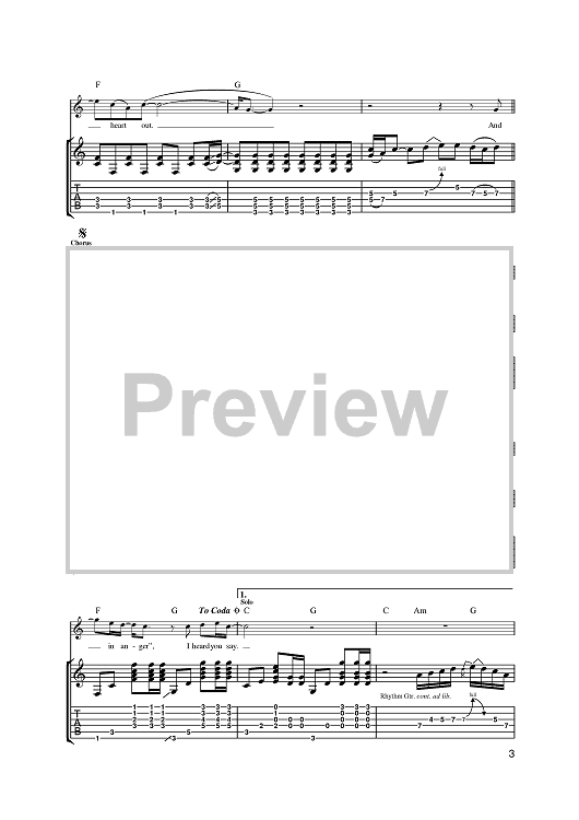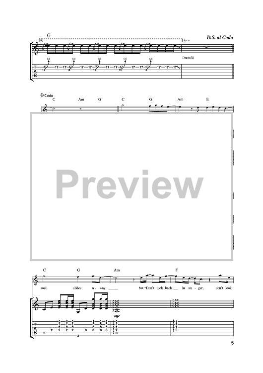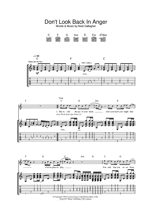 Digital Sheet Music for Don't Look Back In Anger by Noel Gallagher, Oasis scored for Guitar Tab; id:385683
