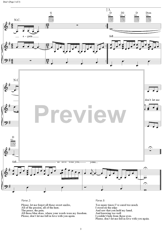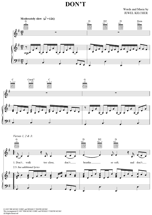 Digital Sheet Music for Don't by Jewel scored for Piano/Vocal/Chords; id:112199