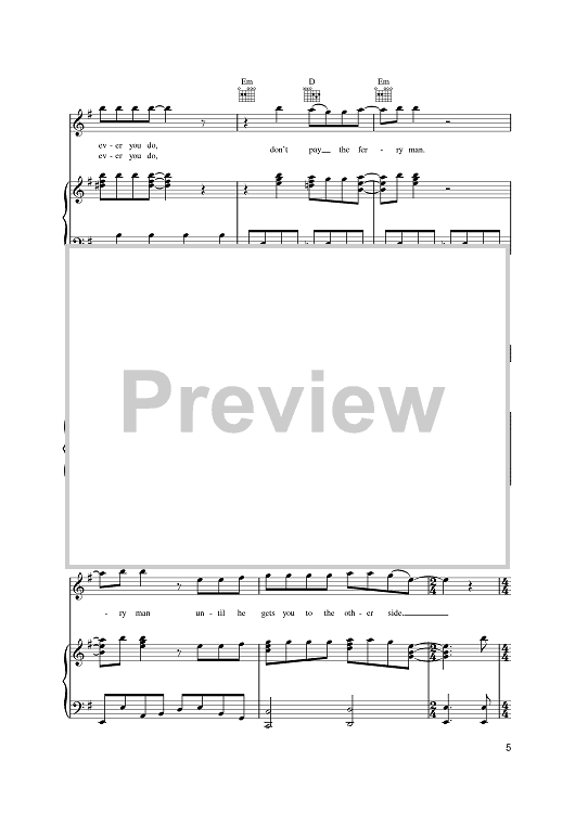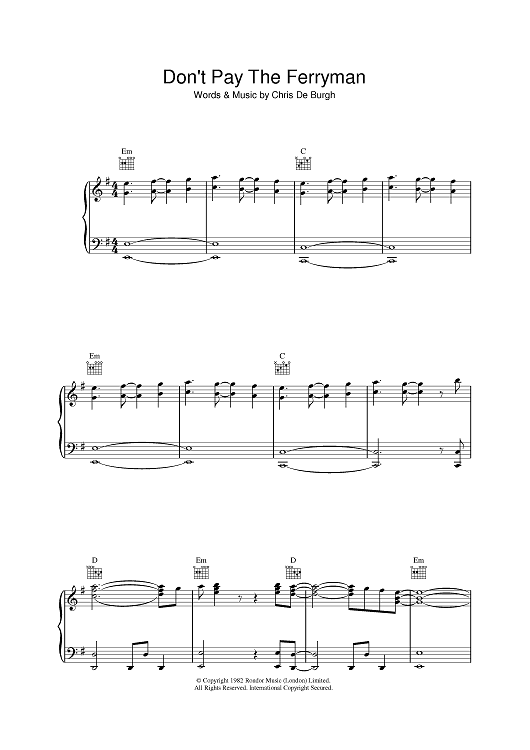 Digital Sheet Music for Don't Pay The Ferryman by Chris de Burgh scored for Piano/Vocal/Chords; id:391435