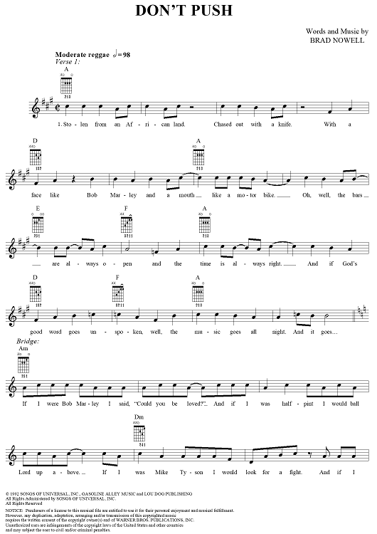 Digital Sheet Music for Don't Push by Sublime, Brad Nowell scored for Easy Guitar/Vocal; id:289688