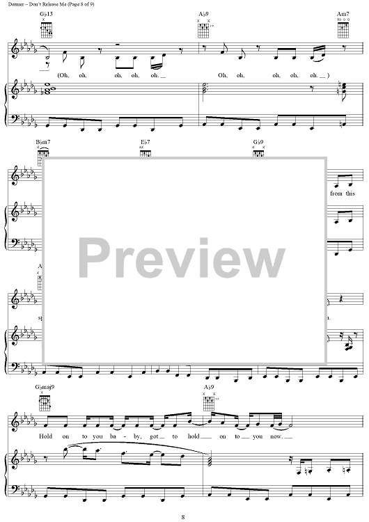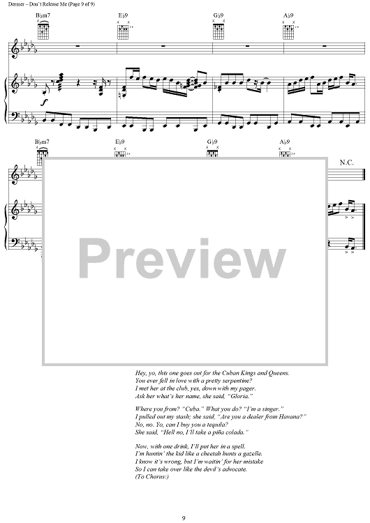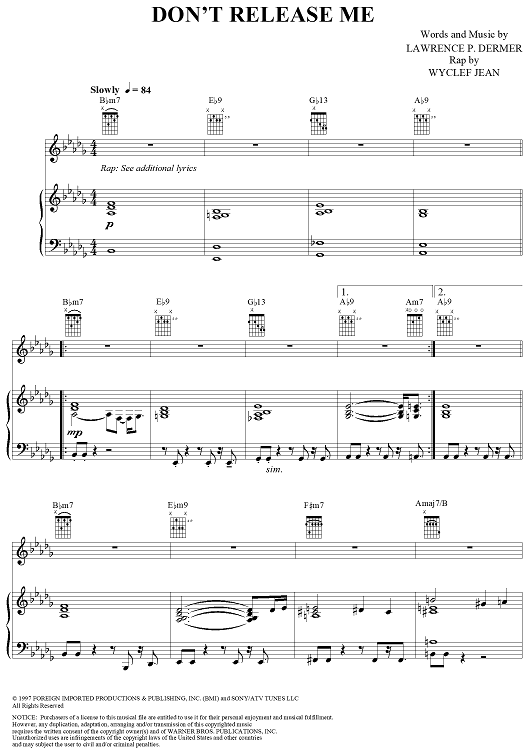 Digital Sheet Music for Don't Release Me by Gloria Estefan, Lawrence Dermer, Wyclef Jean scored for Piano/Vocal/Chords; id:241876