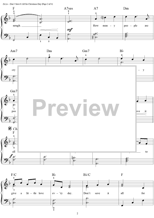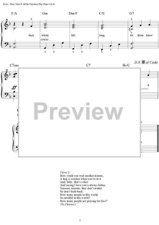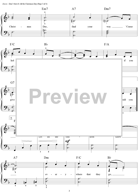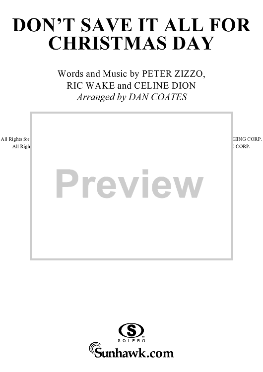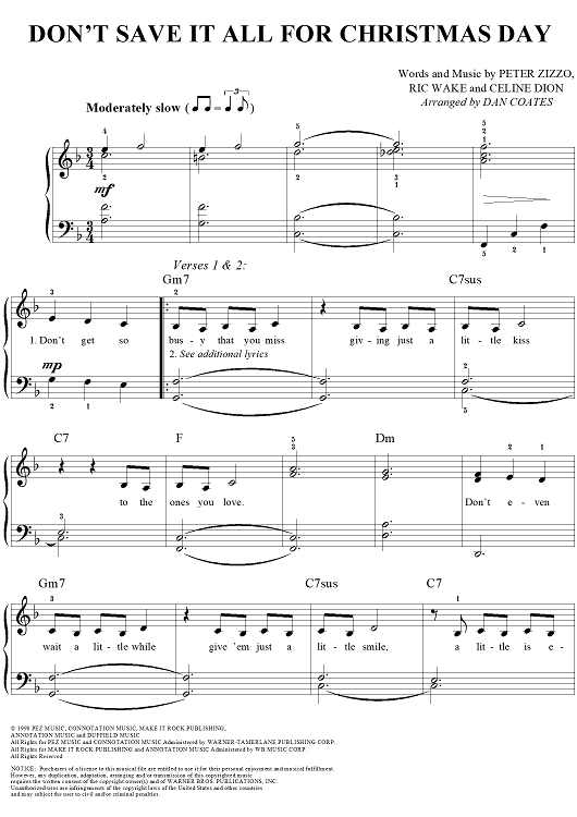 Digital Sheet Music for Don't Save It All For Christmas Day by Dan Coates, Celine Dion, Peter Zizzo, Ric Wake scored for Easy Piano/Vocal/Chords; id:241968