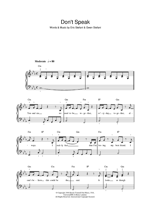 Digital Sheet Music for Don't Speak by No Doubt, Eric Stefani, Gwen Stefani scored for Piano/Vocal/Chords; id:393492
