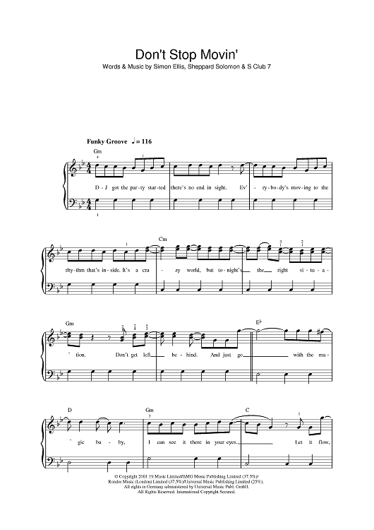 Digital Sheet Music for Don't Stop Movin' by Sheppard Solomon, Simon Ellis, S Club 7 scored for Piano/Vocal/Chords; id:395622