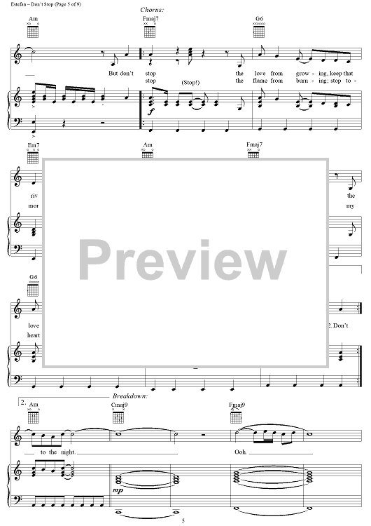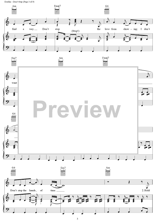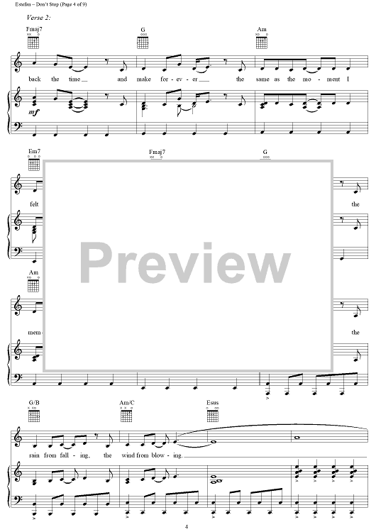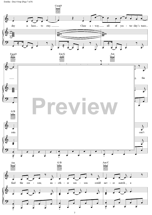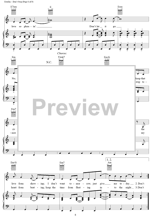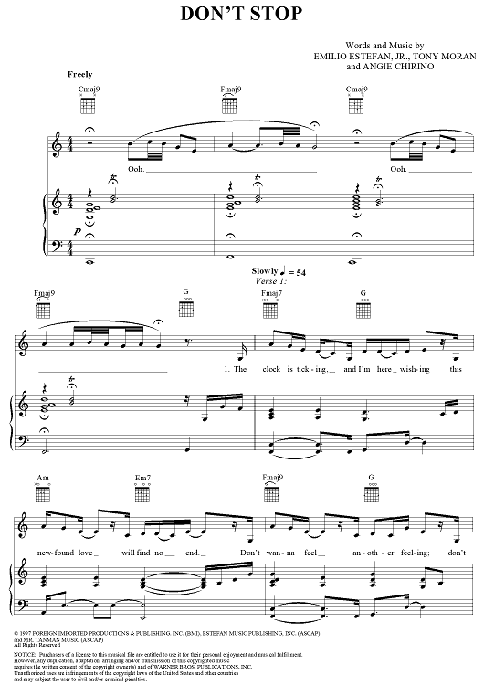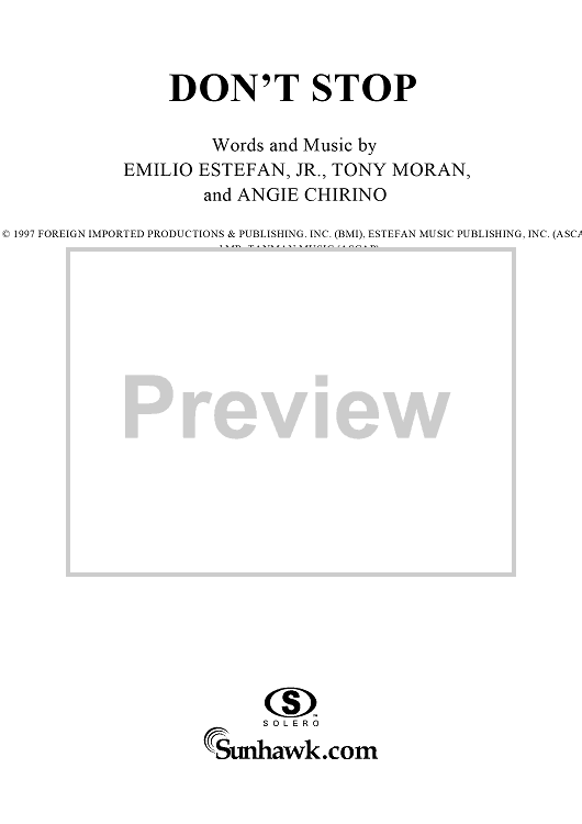 Digital Sheet Music for Don't Stop by Gloria Estefan, Angie Chirino, Emilio Estefan Jr., Tony Moran scored for Piano/Vocal/Chords; id:270149