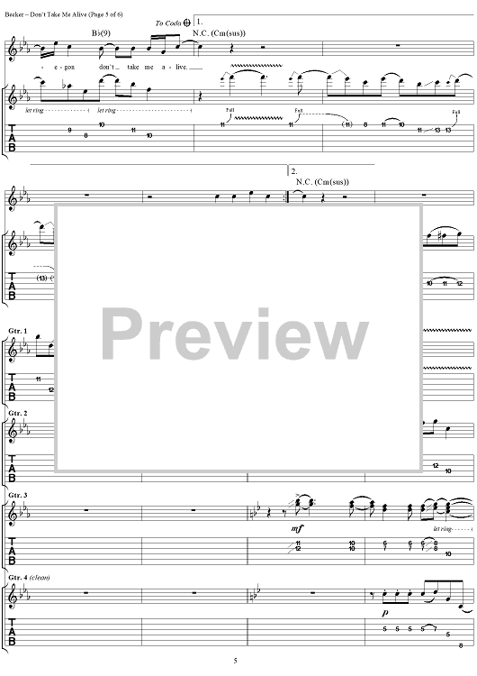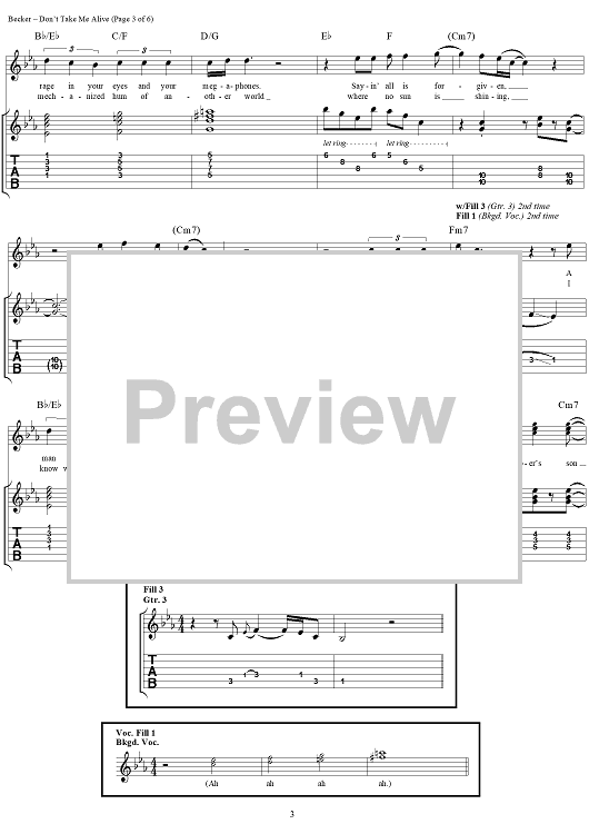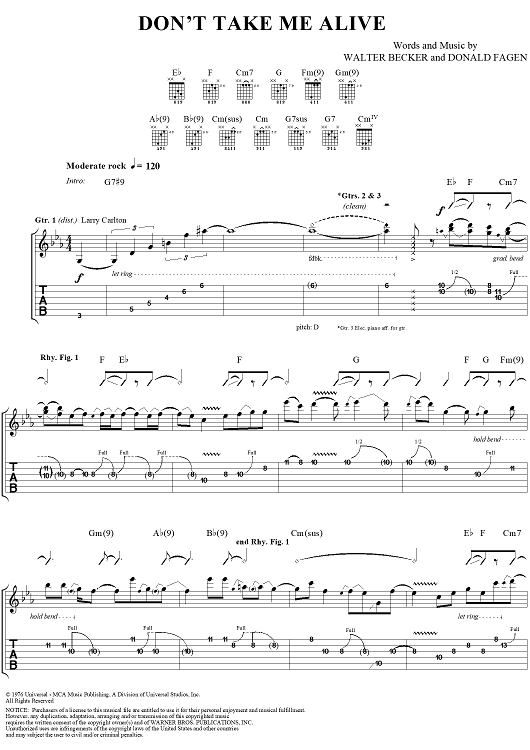 "Don't Take Me Alive" Sheet Music by Steely Dan