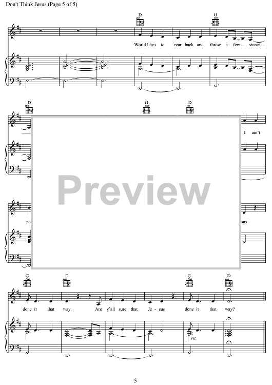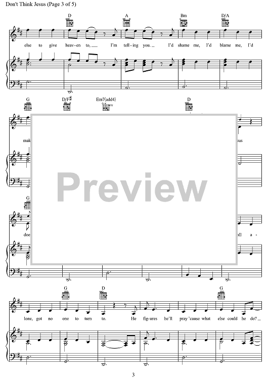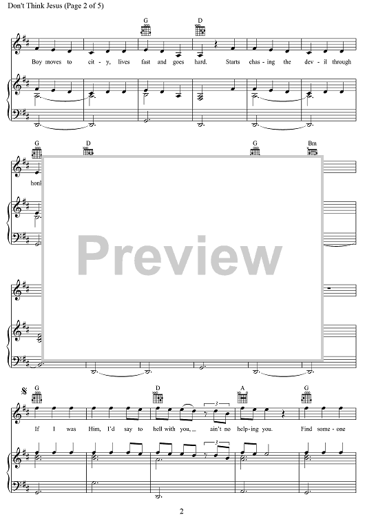 Digital Sheet Music for Don't Think Jesus by Jessi Alexander, Mark Holman, Morgan Wallen, Chase McGill scored for Piano/Vocal/Chords; id:497128