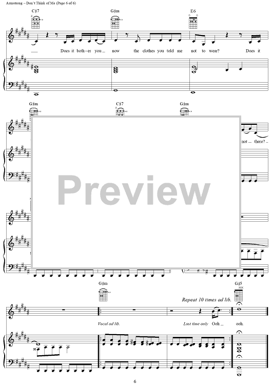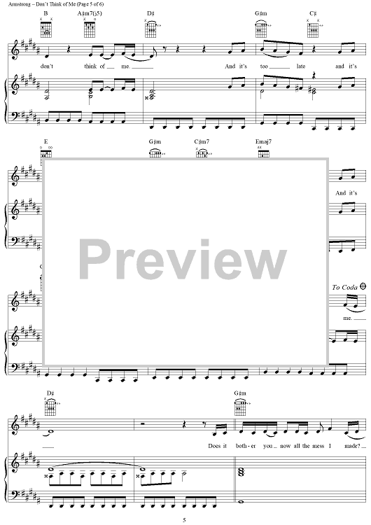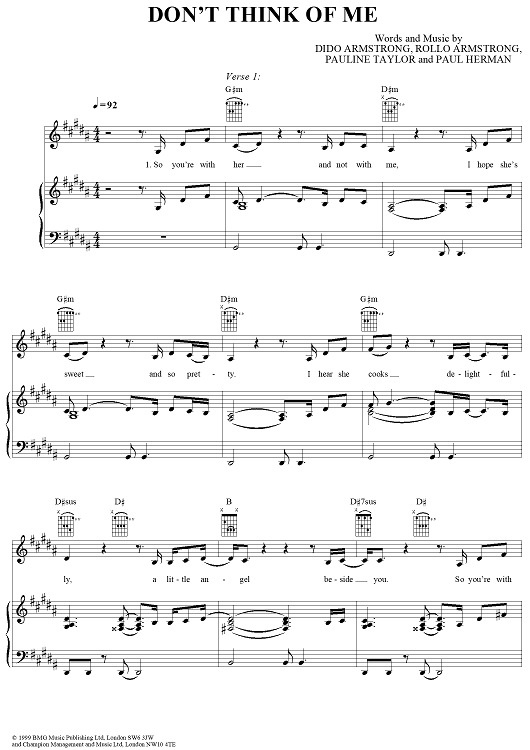 Digital Sheet Music for Don't Think of Me by Dido Armstrong, Paul Herman, Dido, Rollo Armstrong, Pauline Taylor scored for Piano/Vocal/Chords; id:285324