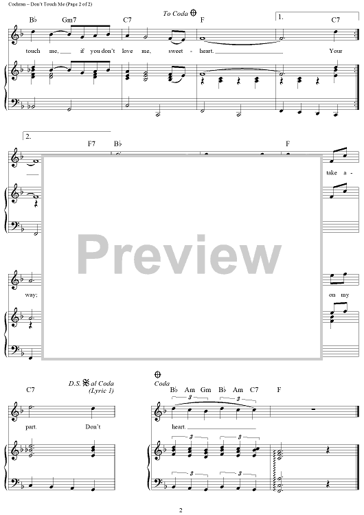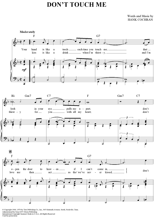 Digital Sheet Music for Don't Touch Me by Hank Cochran, Jeannie Seely scored for Piano/Vocal/Chords; id:362727