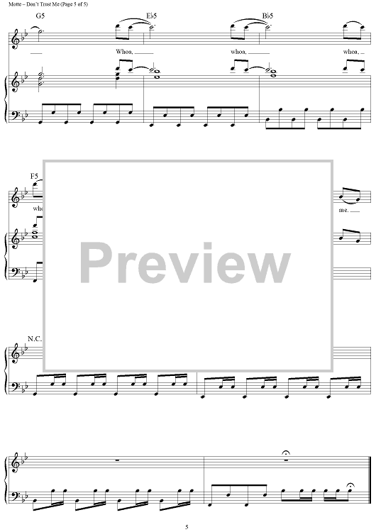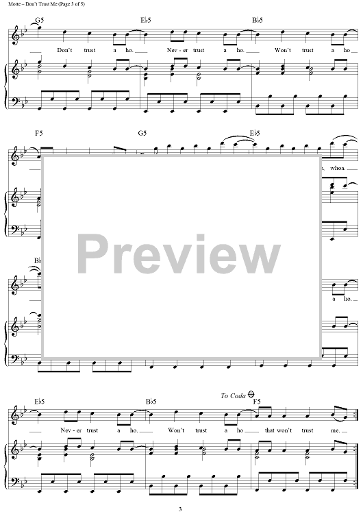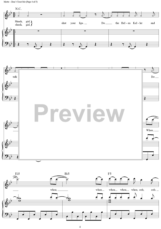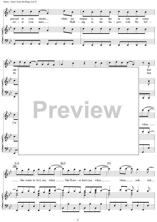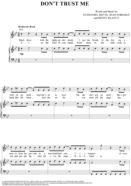 Digital Sheet Music for Don't Trust Me by Sean Foreman, Nathaniel Motte, Benny Blanco, 3OH!3 scored for Piano/Vocal/Chords; id:411410