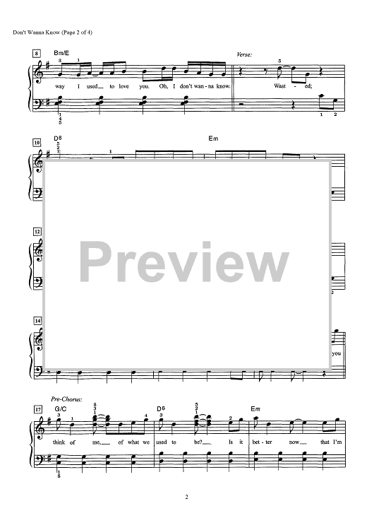 "Don't Wanna Know" Sheet Music by Maroon 5