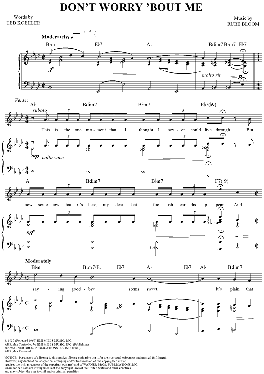 Digital Sheet Music for Don't Worry 'Bout Me by Frank Sinatra, Ted Koehler, Rube Bloom scored for Piano/Vocal/Chords; id:111933