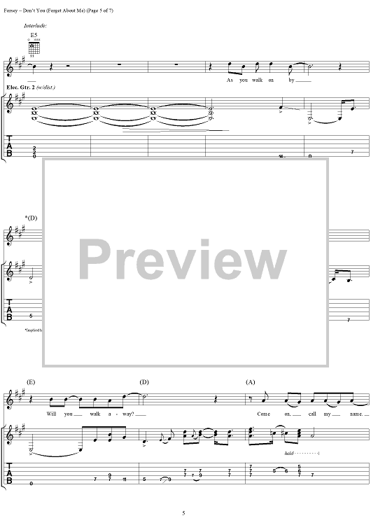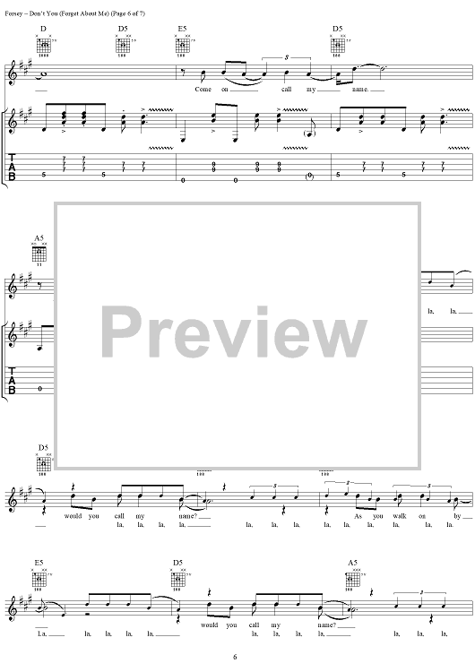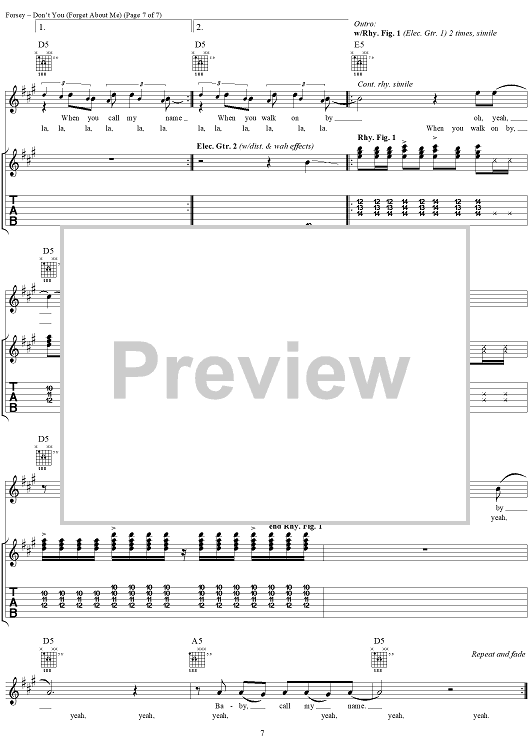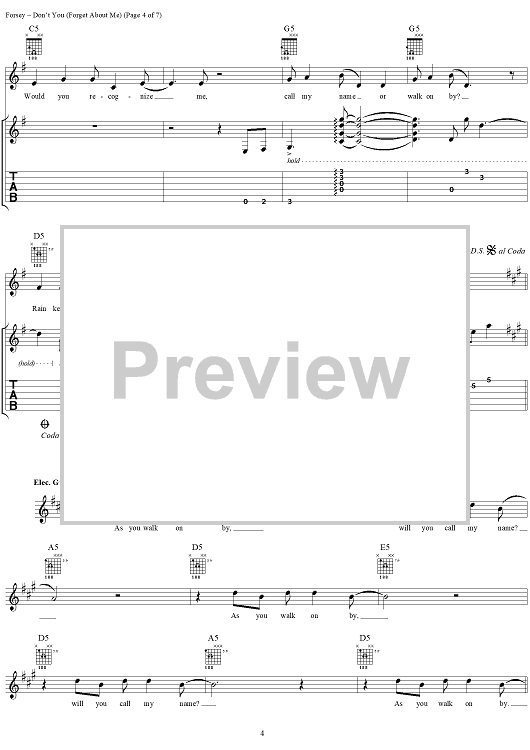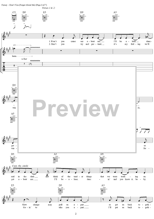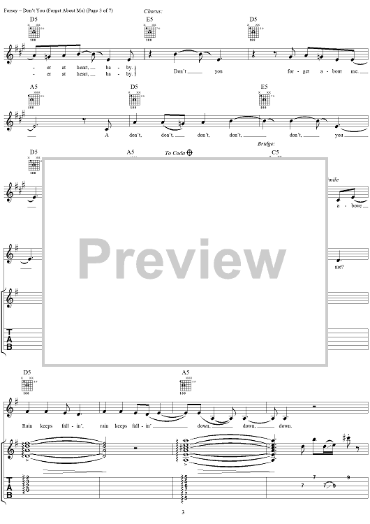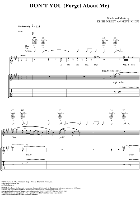 Digital Sheet Music for Don't You (Forget About Me) by Billy Idol, Keith Forsey, Steve Schiff scored for Guitar Tab/Vocal; id:287788