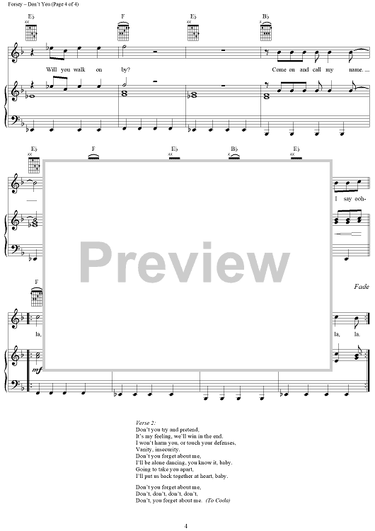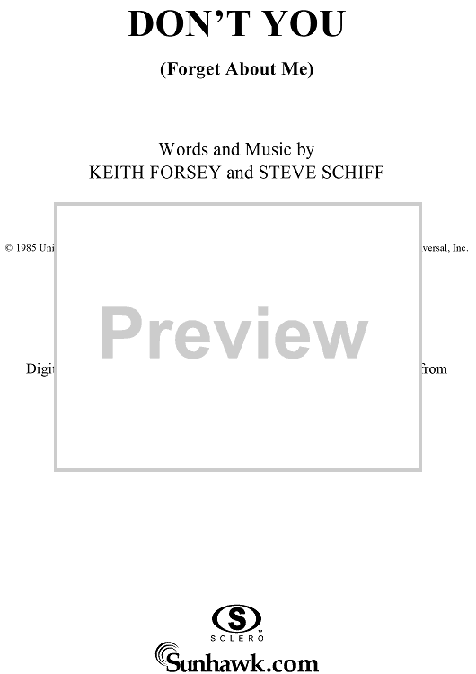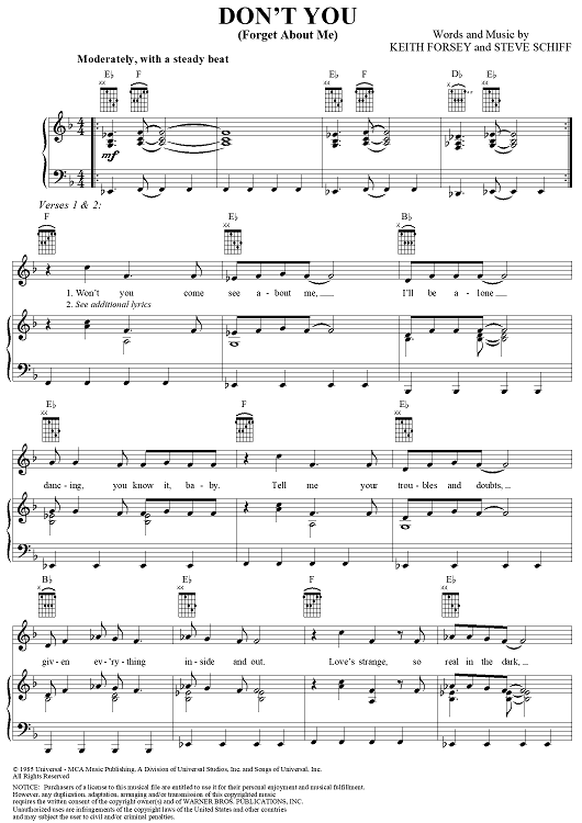 Digital Sheet Music for Don't You by Simple Minds, Keith Forsey, Steve Schiff scored for Piano/Vocal/Chords; id:293662