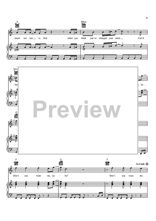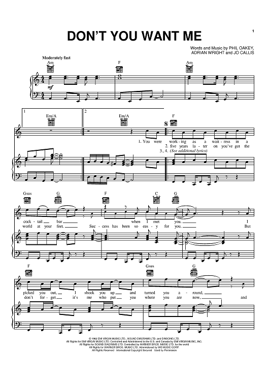 Digital Sheet Music for Don't You Want Me by The Human League, Jo Callis, Phil Oakey, Adrian Wright scored for Piano/Vocal/Chords; id:368610