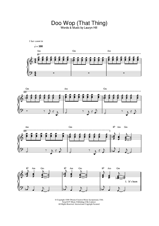 Digital Sheet Music for Doo Wop (That Thing) by Lauryn Hill scored for Piano/Vocal/Chords; id:387721