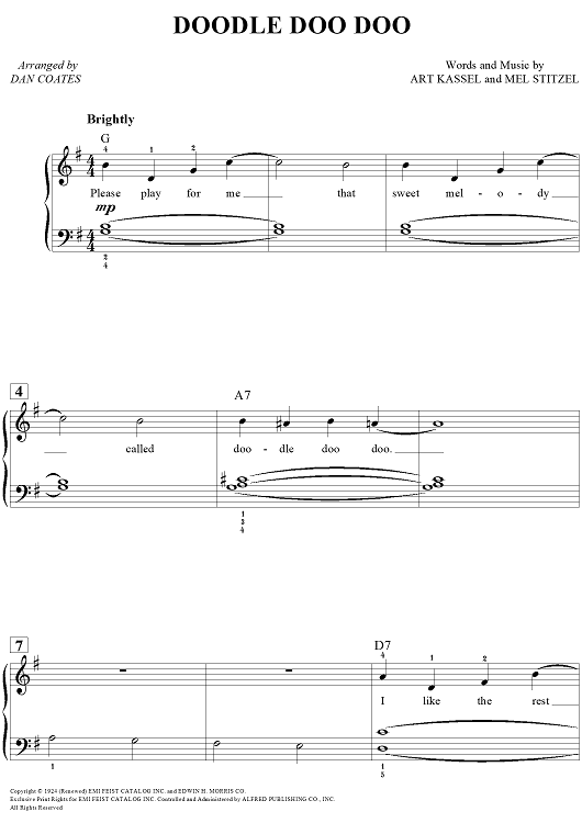 Digital Sheet Music for Doodle Doo Doo by Dan Coates, Mel Stitzel, Art Kassel scored for Easy Piano/Vocal/Chords; id:456992