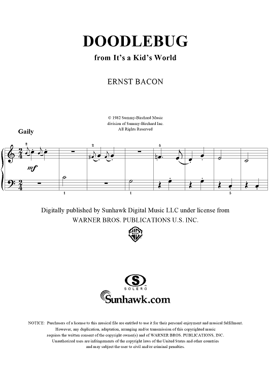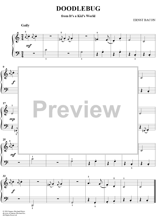 Digital Sheet Music for Doodlebug by Ernst Bacon scored for Easy Piano; id:289530