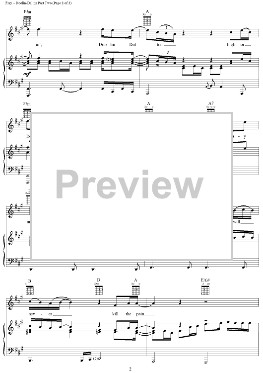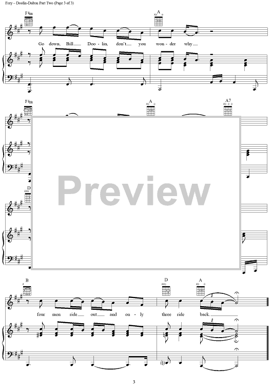 Digital Sheet Music for Doolin - Dalton Part Two by Jackson Browne, Don Henley, J. D. Souther, Glenn Frey, Eagles scored for Piano/Vocal/Chords; id:112744