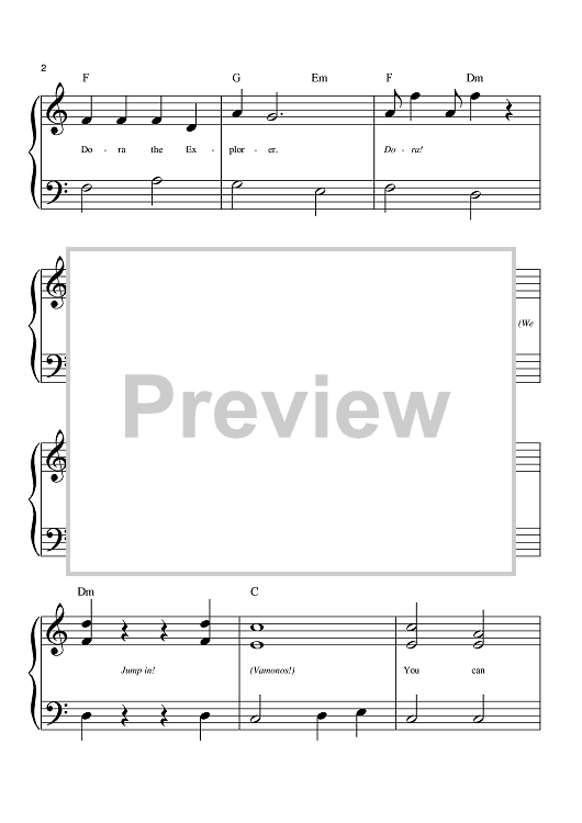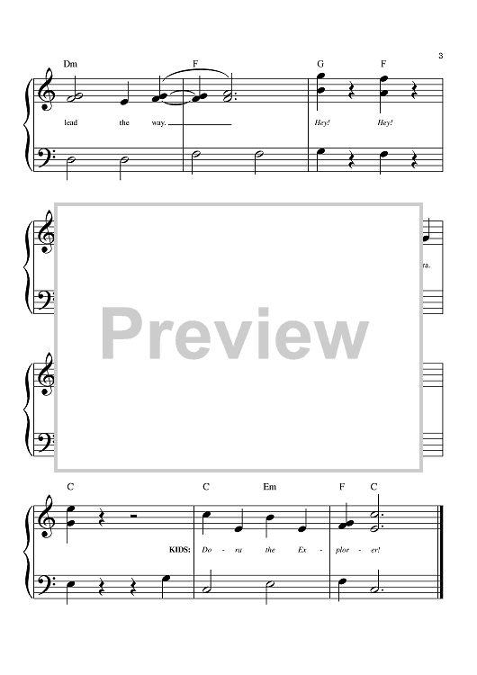 Digital Sheet Music for Dora The Explorer Theme Song by Sarah Durkee, Josh Sitron, Billy Straus scored for Big Note Piano; id:379323