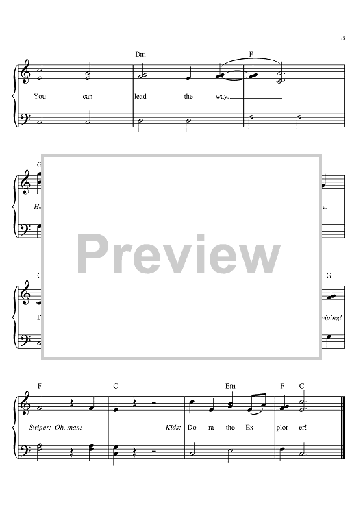 Digital Sheet Music for Dora The Explorer Theme Song by Sarah Durkee, Josh Sitron, Billy Straus scored for Easy Piano; id:393410