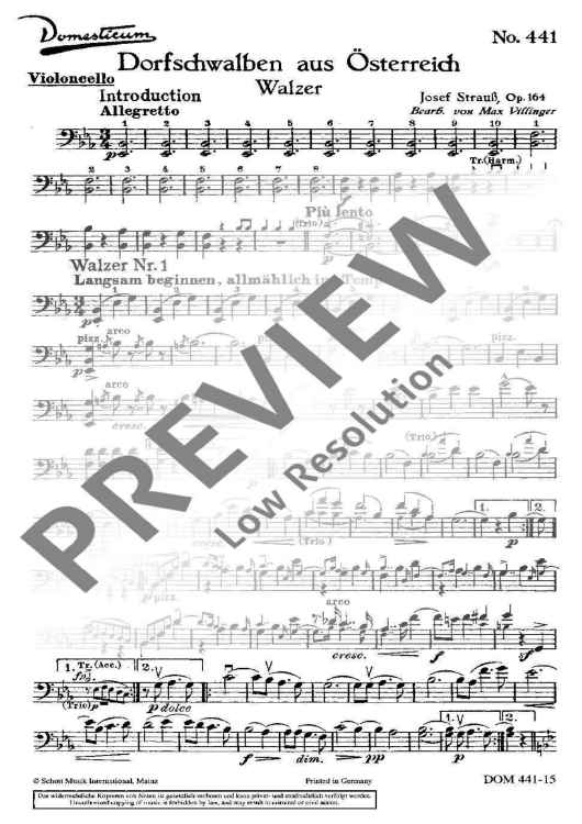 Digital Sheet Music for Dorfschwalben aus Österreich - Cello by Josef Strauß scored for Salon Orchestra; id:488179