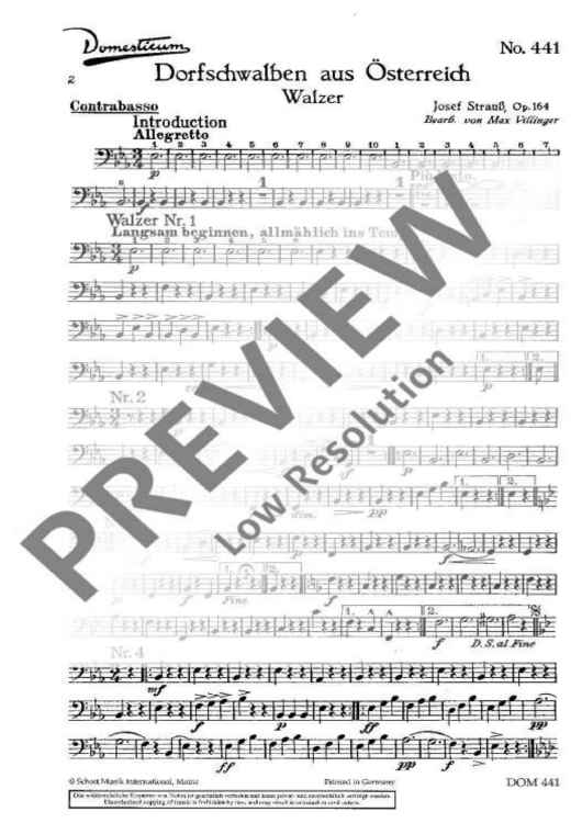 Digital Sheet Music for Dorfschwalben aus Österreich - Double Bass by Josef Strauß scored for Salon Orchestra; id:488178