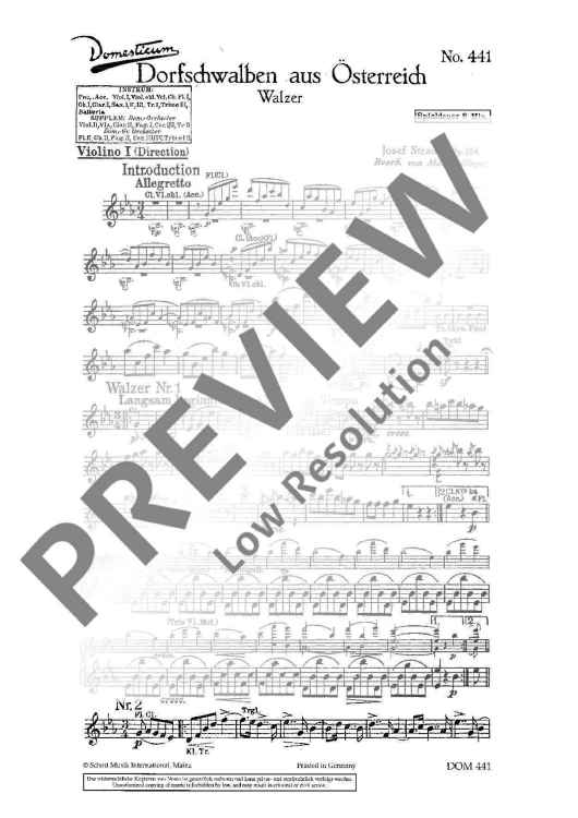 "Dorfschwalben aus Österreich - Violin I" Sheet Music by Josef Strauß