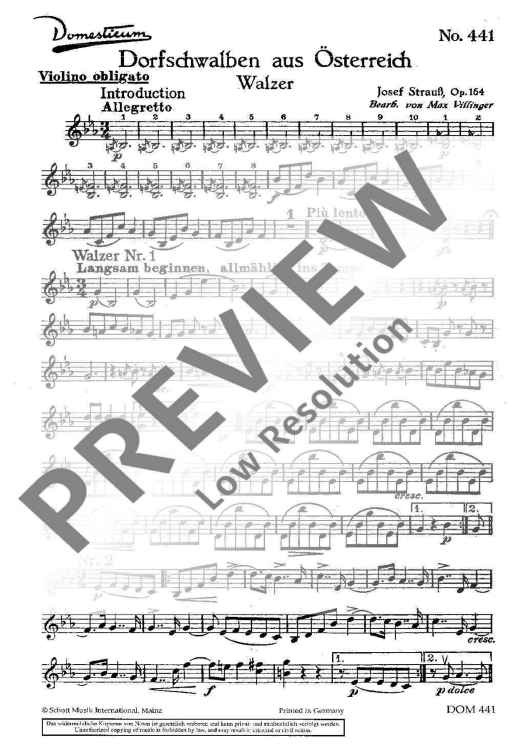 Digital Sheet Music for Dorfschwalben aus Österreich - Violin Obligat by Josef Strauß scored for Salon Orchestra; id:488182
