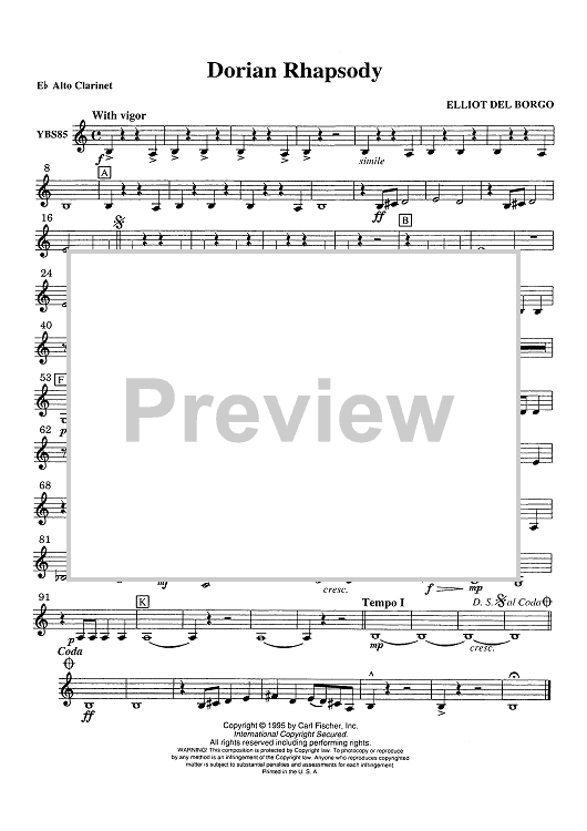 Digital Sheet Music for Dorian Rhapsody - Alto Clarinet in Eb by Elliot Del Borgo scored for Concert Band; id:435259