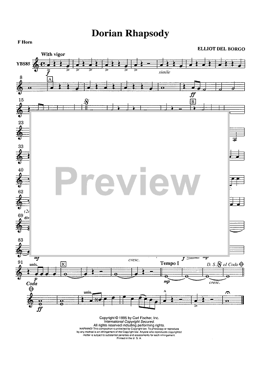Digital Sheet Music for Dorian Rhapsody - Horn in F by Elliot Del Borgo scored for Concert Band; id:435266