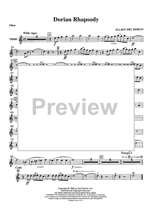 Digital Sheet Music for Dorian Rhapsody - Oboe by Elliot Del Borgo scored for Concert Band; id:435256