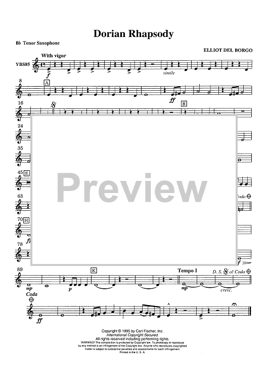 "Dorian Rhapsody - Tenor Sax" Sheet Music by Elliot Del Borgo