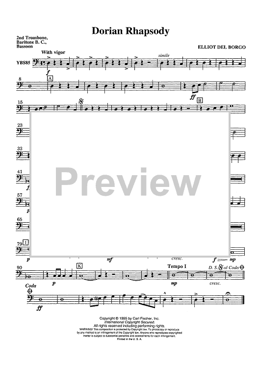Digital Sheet Music for Dorian Rhapsody - Trombone 2/Baritone BC by Elliot Del Borgo scored for Concert Band; id:435268