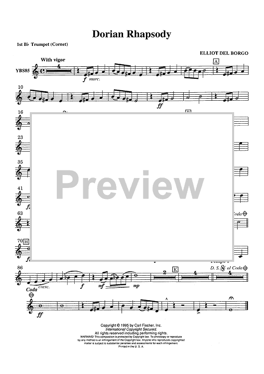 Digital Sheet Music for Dorian Rhapsody - Trumpet 1 in Bb (Cornet) by Elliot Del Borgo scored for Concert Band; id:435264