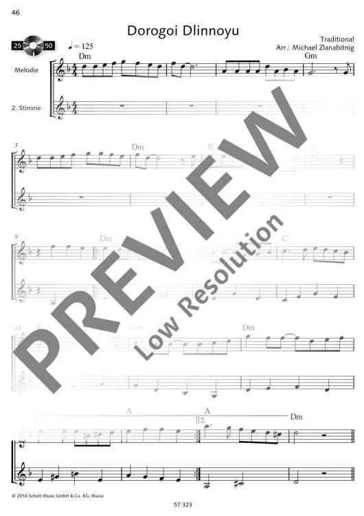 Digital Sheet Music for Dorogoi dlinnoyu by Michael Zlanabitnig scored for 1-2 Violins; id:489768