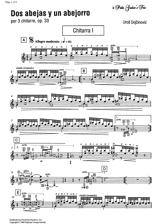 Digital Sheet Music for Dos abejas y un abejorro Op.33 - Guitar 1 by , Uros Dojcinovic scored for 3 Guitars; id:329740